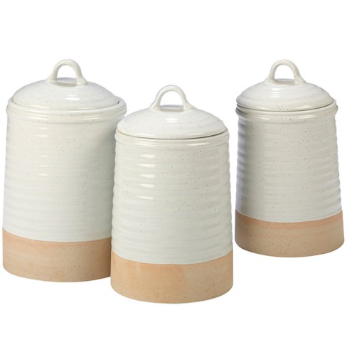Shop Wayfair for all the best White Kitchen Canisters & Jars. Enjoy Free Shipping on White Fleurdelis 3 Piece Kitchen Canister Set. +4 ColorsAvailable in 4 .ingredients artfully displayed on the countertop or in the pantry with white kitchen canisters. Find sets with chalkboard labels, secure clamps and wooden lids..10 Strawberry Street Kitchen Canister Set, 3 Piece, Tide White. 3.8 out of 5 stars 381..Anchor Hocking Ceramic Canister Set with Clamped Lid and Wooden Spoon, White, Mixed Sizes, Set of 4. 4.3 out of 5 stars 664..Need a kitchen canister set to help you organize your ingredients? Here at Kirkland's, we carry a wide variety of kitchen canisters and glass jars with lids! Shop Simple Things Shop Now Blue and White Classic Ceramic Canisters, Set of 3..Shop for white kitchen canisters at Bed Bath & Beyond. Buy top $29.99. Home Basics 4Piece Ceramic Canister Set with Spoons in White..9.3'' H x 10.4'' H x 11.8'' H x 4.5'' W x 4.5'' W x 4.5'' W x 4.5'' D x 4.5'' D x 4.5'' D. Opens in a new tab. Sale. White Scandinavian 3 Piece Kitchen Canister Set..Shop for white ceramic kitchen canister online at Target. 84oz Stoneware Genesis Stripe Food Storage Canister with Wood Lid White/Gray Threshold™..Shop Wayfair for all the best Ceramic White Kitchen Canisters & Jars. Mind Reader Small, Medium, Large Ceramic Canister Set with Lids, 3 pc Round .Home Basics CS44154 4 Piece Ceramic Canister Set with Spoon, White. 4.5 out of 5 stars 3,002.